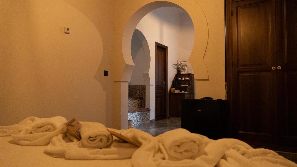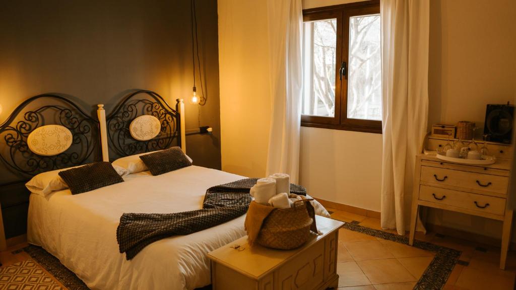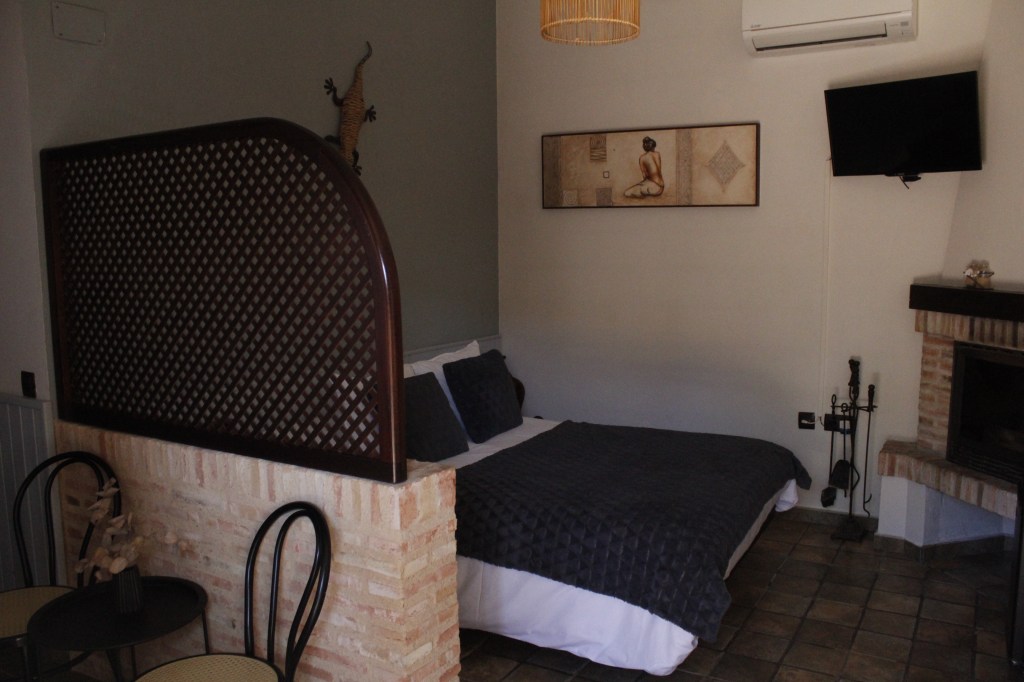 Arco debe su nombre al majestuoso arco de medio punto que preside la estancia, testigo silencioso de muchas historias. Con muros de piedra, tonos cálidos y una bañera de hidromasaje que invita al descanso, esta habitación es ideal para quienes buscan una escapada con sabor tradicional, comodidad y encanto rural.