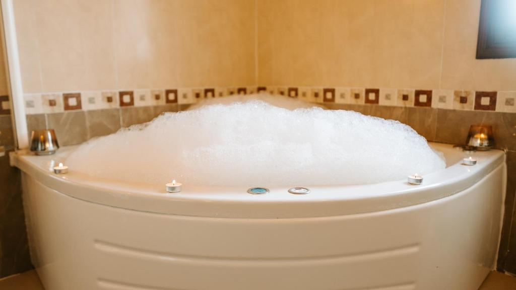 En Hospedería Ballesteros cada habitación es un pequeño universo. Hemos creado espacios únicos que te invitan a viajar sin salir del corazón rural, con bañeras de hidromasaje y una decoración cuidada al detalle.